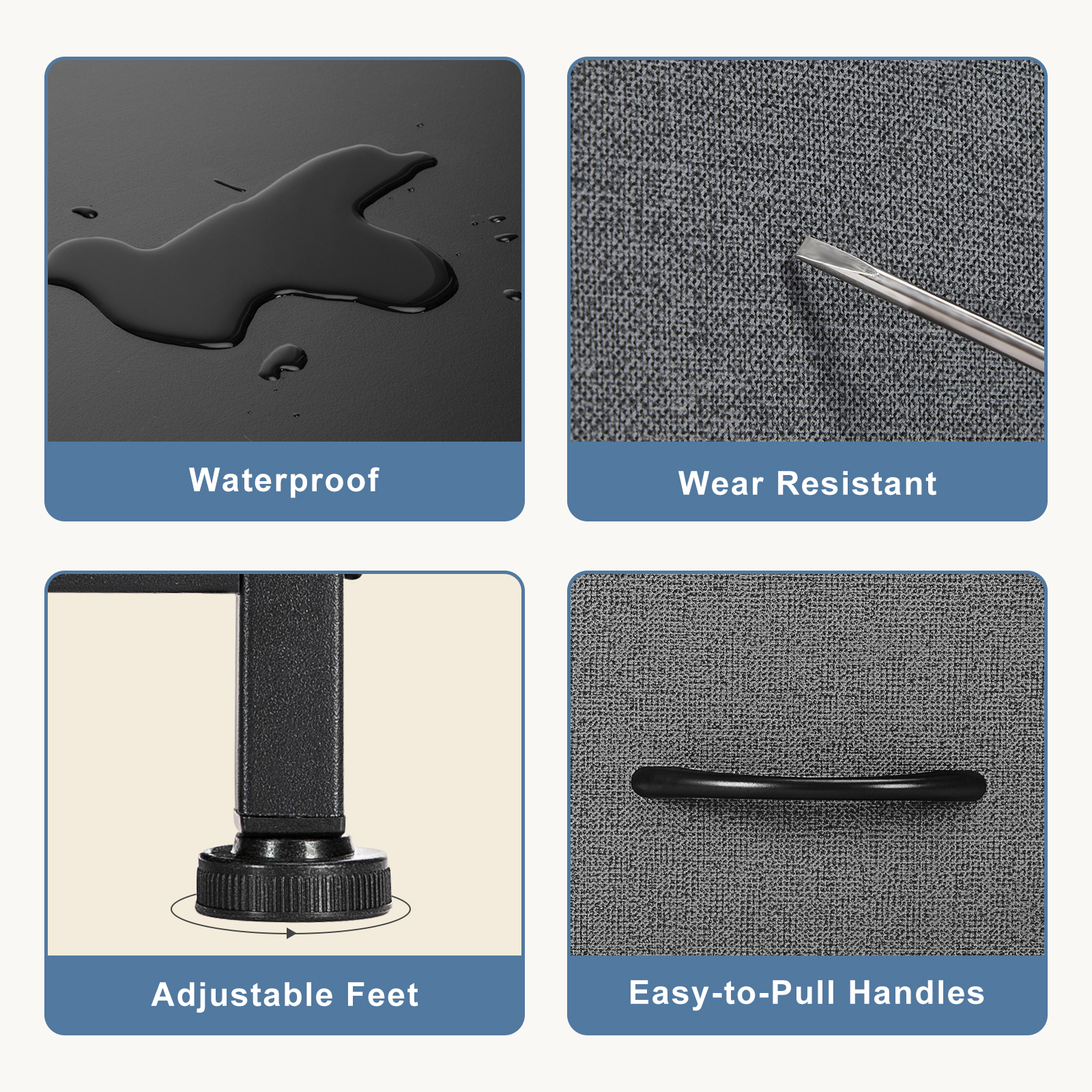 - 【Solid and Stable】Use a thick metal frame to keep the fabric dresser stable, with 4 adjustable feet to protect your floor from scratches, and you can adjust the balance of the chest of drawers in small areas. An auxiliary feature can be added if the dresser is attached to the wall, as it prevents uneven floors or tilting caused by children climbing.